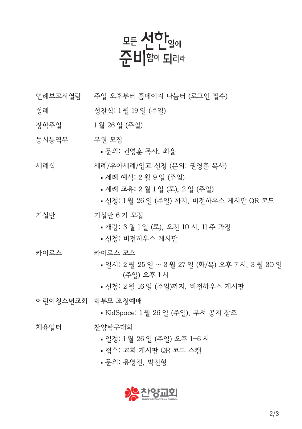 교회 일정